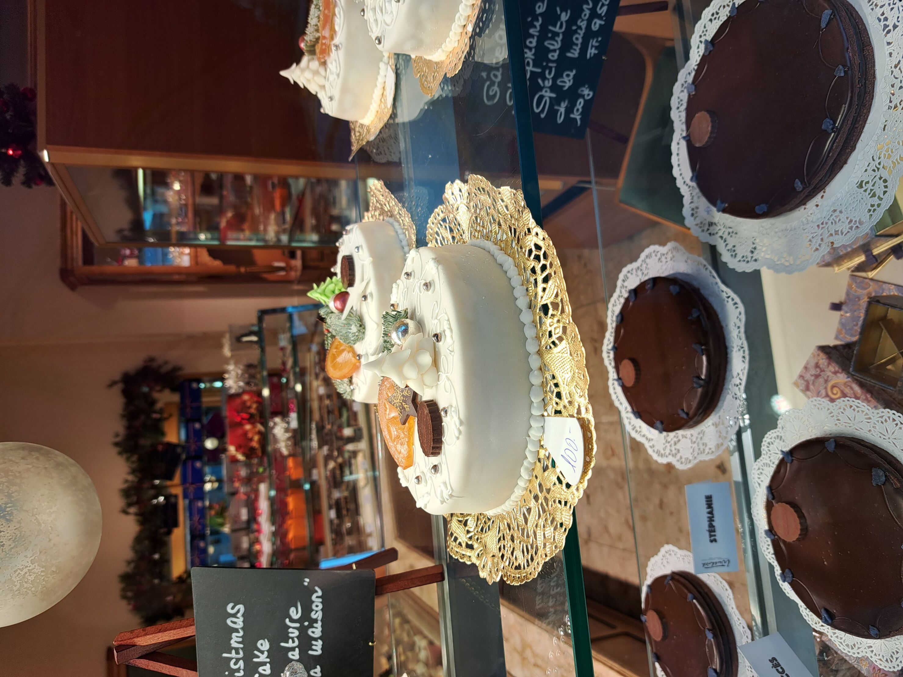 Hier een foto van een kersttaart, de taart is ongeveer 10 cm diameter en kost 100 CHF.