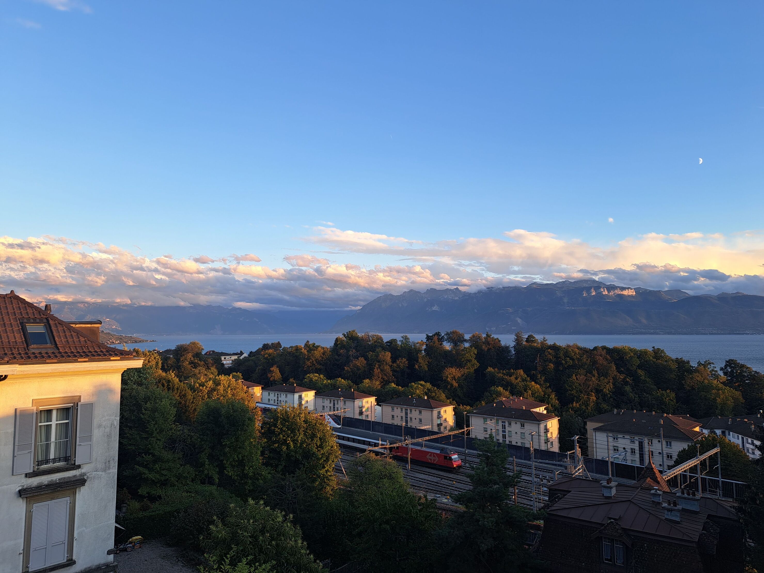 Ik had vandaag les in Sion. De treinrit is prachtig want het spoor ligt vlak tegen het meer van Genève.