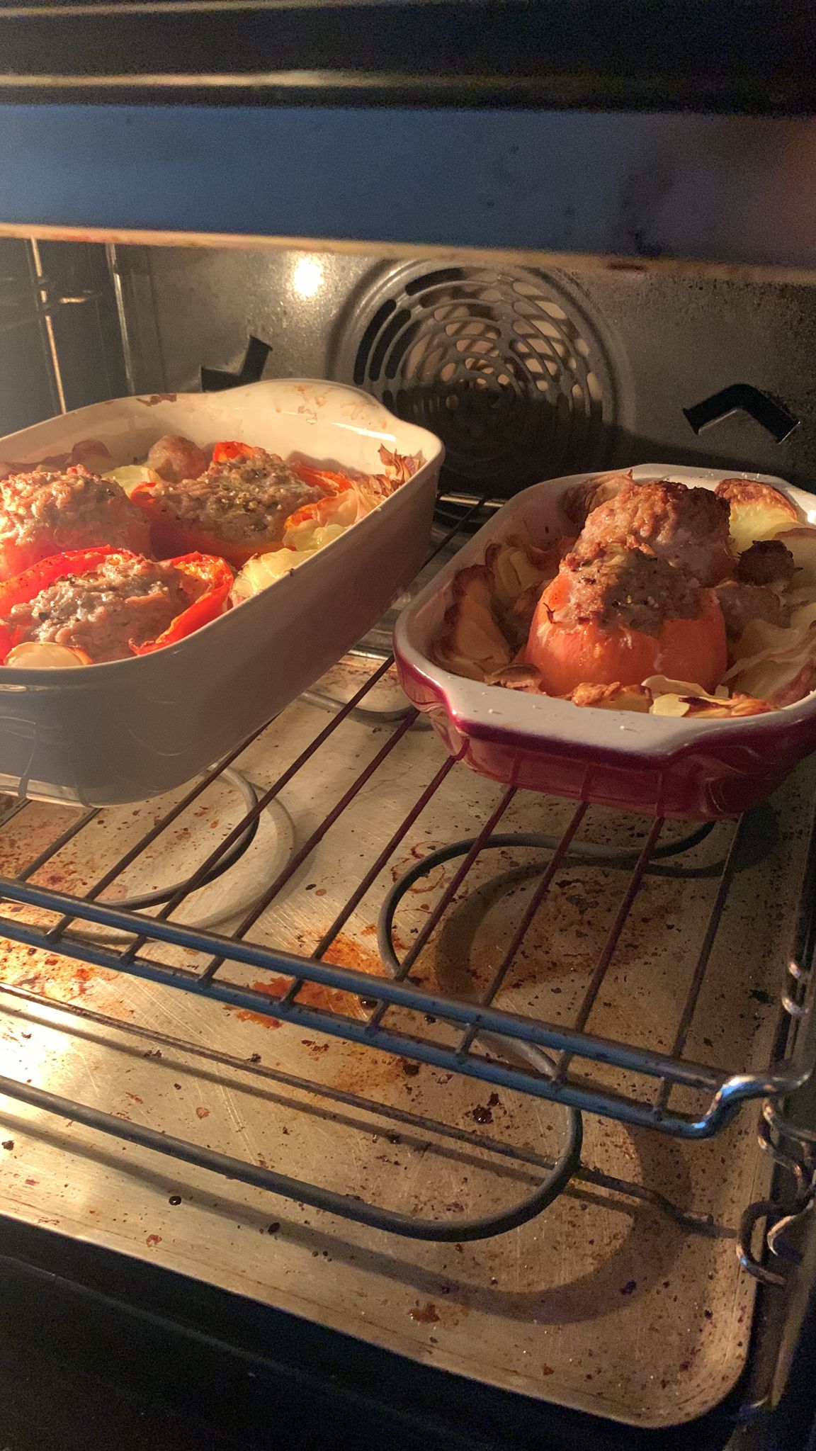 ’s Avonds heb ik samen met Ipek gekookt. Ovenschoten met gevulde tomaat met gehakt en veel groentjes!